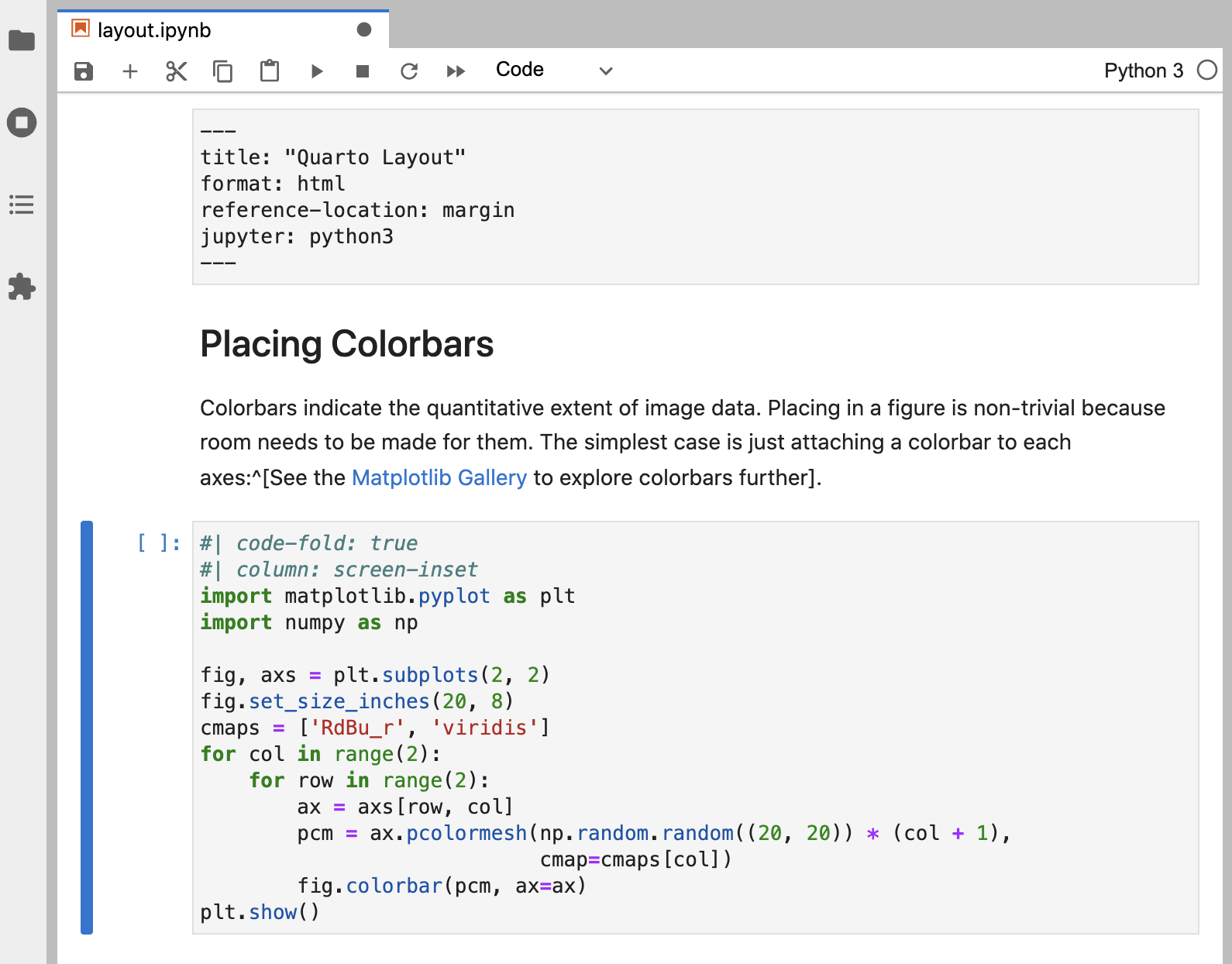 In this tutorial we’ll show you how to author Quarto documents in Jupyter Lab. In particular, we’ll discuss the various document formats you can produce and show you how to add components like table of contents, equations, citations, cross-references, and more.