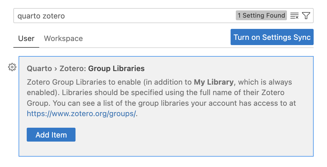 If you need to change your Zotero API key, you can always execute the Quarto: Zotero - Connect Web Library command. To force a sync of your web library, execute the Quarto: Zotero - Sync Web Library command (note that your web library is synced automatically so it is unlikely you’ll need to use this command explicitly).
